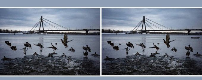Auf den ersten Blick scheinen die beiden Bilder mit Enten gleich zu sein. Sie zeigen die Nordbrücke in Kiew und Enten in deren Nähe. Es gibt jedoch mehrere kleine, aber wichtige Unterschiede zwischen den Bildern. Indem du nach ihnen suchst, kannst du testen, wie scharf dein Sehvermögen und deine Fähigkeit, Details zu erkennen, sind.